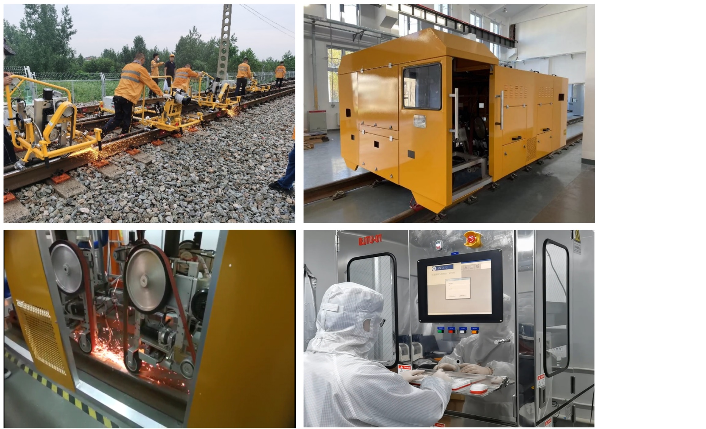 近年来取得的科研成果: 1. 钢轨病害检测、质量评价与健康管理系统 2. 钢轨打磨控制系统与多磨头打磨模式软件 3. 锂电钢轨砂带新型系列打磨机(已规模化应用) 4. 道岔钢轨智能四头砂带打磨车 5. 钢轨砂轮打磨综合试验平台 6. 钢轨砂带打磨综合试验平台 7. 基于物联网的钢轨打磨设备综合信息管理系统 8. 基于动态集群磁场的磁流变平面超光滑抛光机 9. 长寿命高性能磁流变抛光液