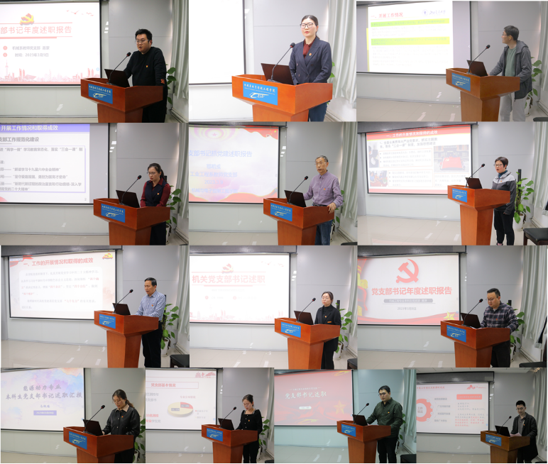 机械系、测控系、动力系、车辆系,工业工程系、材料中心、实验训练中心、院机关8个教工党支部和本科生5个党支部共13名党支部书记从过去一年工作开展与成效、存在问题与原因分析、下一步工作思路与举措三方面依次进行述职汇报。学院党委委员分别对各支部书记上一年度工作开展情况进行了逐一点评,在肯定成绩的同时,指出存在的不足及今后努力的方向。