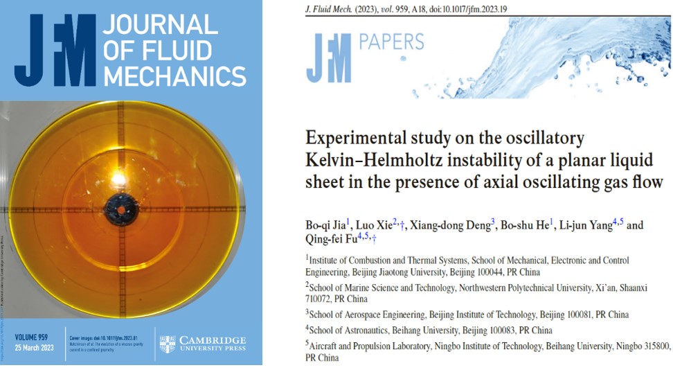 近日,太阳网集团tcy8722燃烧与热力系统学术团队在流体界面失稳特性研究方面取得重要进展,其研究成果“轴向气流振荡场中平面液膜的振荡开尔文—亥姆霍兹不稳定实验研究”在流体力学国际顶级期刊《Journal of Fluid Mechanics》中正式发表,《Journal of Fluid Mechanics》是剑桥大学出版社主办的流体力学领域的国际权威杂志,被公认为流体力学领域最著名的顶级期刊。