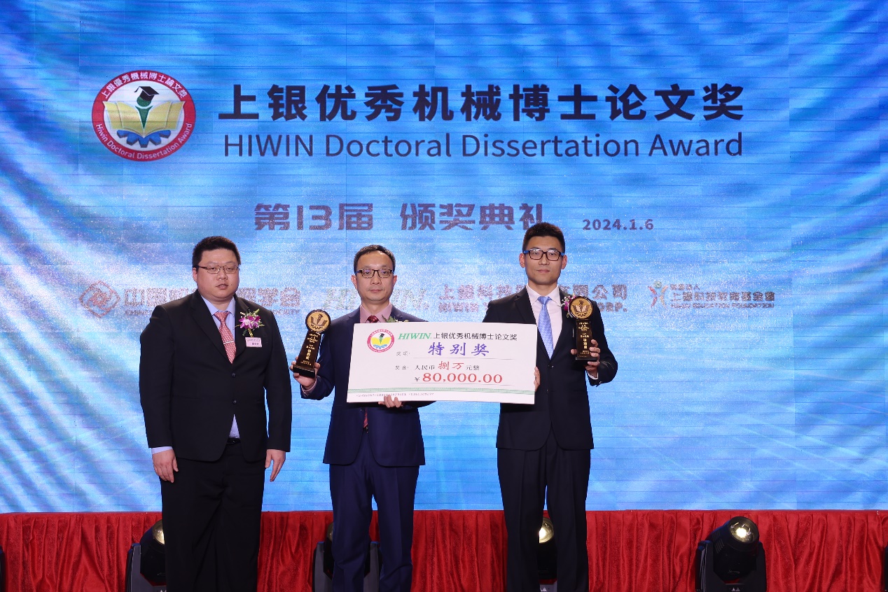 “上银优秀机械博士论文奖”是我国机械工程领域博士论文的最高荣誉。该奖项由台湾上银科技股份有限公司(HIWIN)于2011年出资设立,由中国机械工程学会组织评选,每年一届,旨在鼓励创新精神,提高中国机械工程及其自动化领域博士生教育的质量。第13届“上银优秀机械博士论文奖”是从2023年度两岸四地高校机械工程学科博士学位获得者的论文中选出。经形式审查、初审、复审筛选后,按照“坚持标准、宁缺毋滥、科学公正、面向应用、注重创新”的评选原则,最后经过由10余位以院士为主的专家终审委员会答辩后,共评出金奖1篇、银奖2篇、铜奖3篇、优秀奖5篇、特别奖5篇、佳作奖10篇。