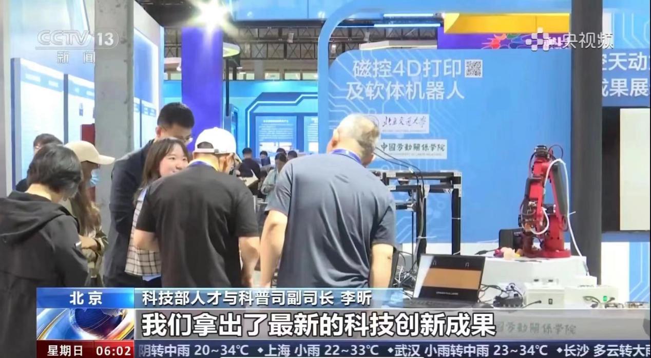 中央电视台《朝闻天下》栏目报道北京交通大学太阳网集团tcy8722磁控4D打印与软体机器人技术