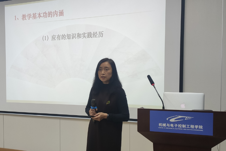 张英介绍了教学基本功的内涵,介绍了教学目标、教学内容和教学环节的设计等教学设计全要素以及方法,她以自己讲授的《机械原理》课程为例,详细介绍了教案设计以及课程思政案例设计要点,鼓励教师们加强教学反思,及时改进教学方法和教学内容,切实提升课堂教学质量。