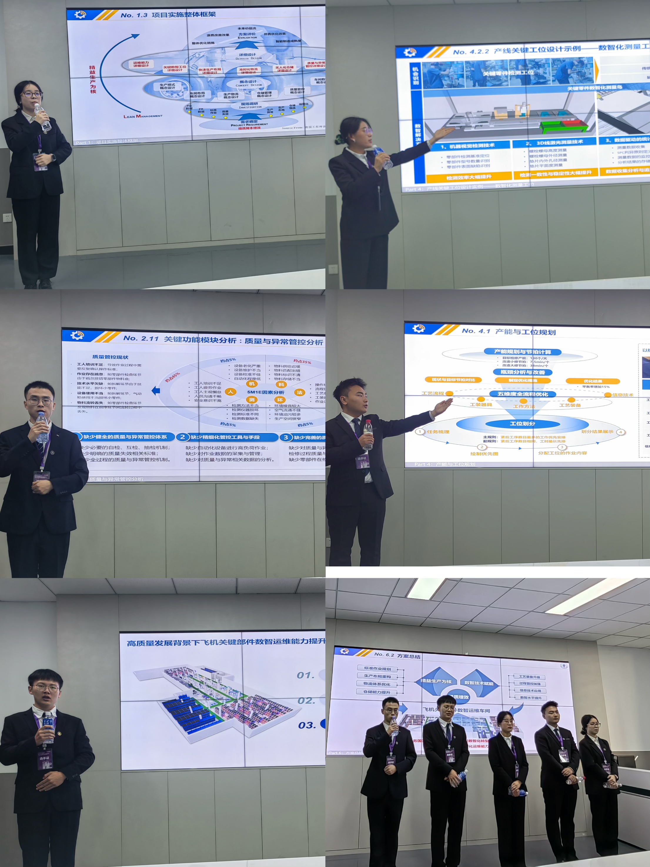 自参赛队伍形成以来,各组队员们反复参考现场调研资料、研究讨论、头脑风暴,最终确定汇报内容。在决赛备赛期间,队员们不断精炼优化、反复演练,不断纠正展示过程中语言、表情、动作等方面不足,每天积极备练。指导老师不辞辛劳,对PPT制作、文案撰写、讲稿、汇报等进行全面指导。