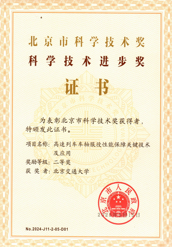 近日,北京市科学技术奖励大会召开,我院轨道车辆结构可靠性创新团队王文静教授主持完成的“高速列车车轴服役性能保障关键技术及应用”的成果荣获科学技术进步奖二等奖。(编号:No.2024-J11-2-05-D01)
