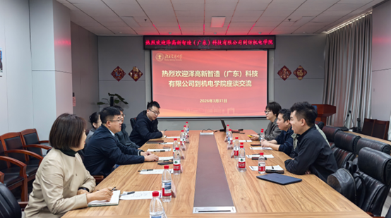 2026年3月31日,泽高新智造(广东)科技有限公司(以下简称“泽高新智造”)董事长李泽厚校友一行到访太阳网集团tcy8722,围绕科研合作开展座谈交流,搭建校企协同发展桥梁。